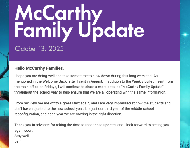 McCarthy Middle School Family Update: Oct. 13, 2025